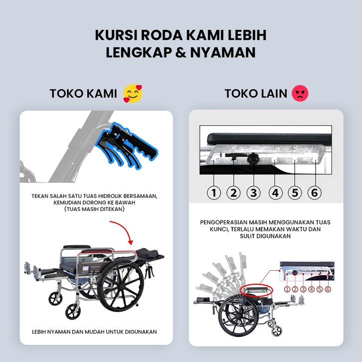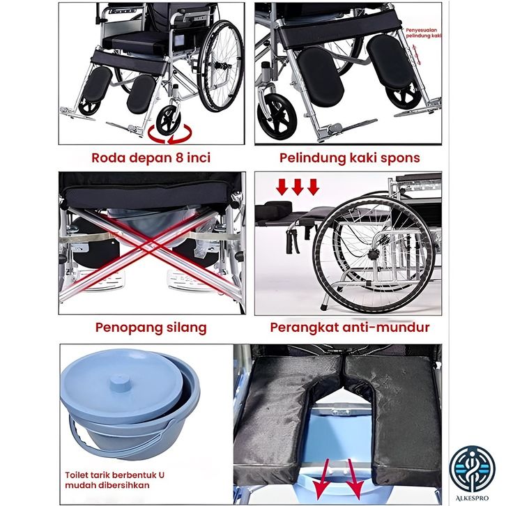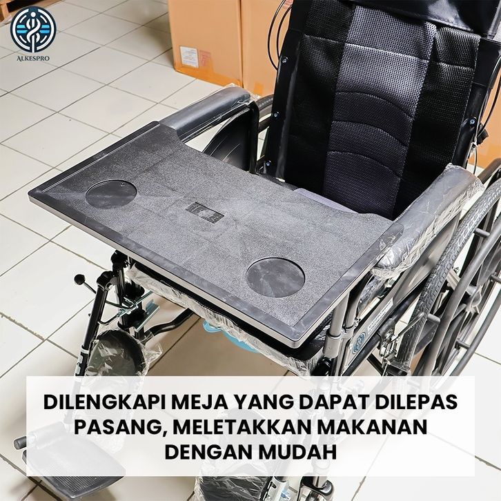 Kursi Roda Hidrolik + Meja Makan ALKESPRO - Sandaran Hidrolik Anti Ribet