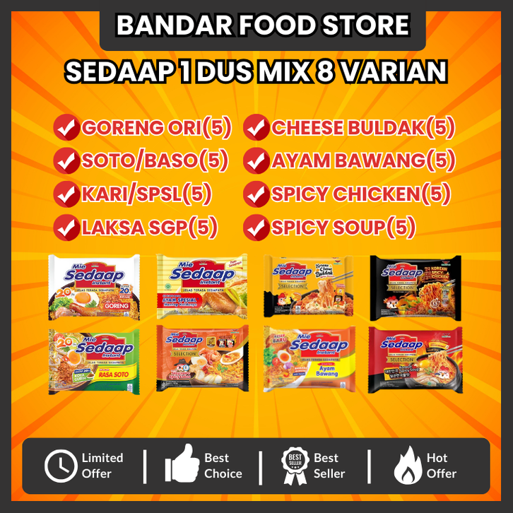 (SDP) MIX REQUEST, (SDP) MIX 8 VARIANT, (SDP) MIX SELECTION, (SDP) GORENG, KARI, SOTO, AYAM BAWANG, (SDP) GORENG ORI, (SDP) SOTO, (SDP) AYAM BAWANG, (SDP) KARI AYAM, (SDP) KARI SPESIAL, (SDP) BASO SPECIAL, (SDP) SPICY CHICKEN, (SDP) SPICY SOUP, (SDP)LAKSA SINGAPORE, (SDP) CHEESE BULDAK, (SDP) GORENG DEVINA