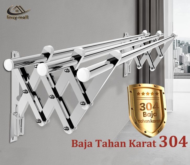 Jemuran Baju Dinding Stainless Steel Jemuran Dinding Lipat 200/180/150/120/100CM Anti Karat