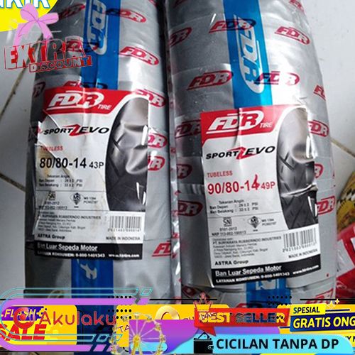 CICILAN/BARU+ PROMO..MURAH..PAKET BAN TUBELESS MATIC FDR SPORT ZEVO 80/80 .14 & 90/80 .24 FREE PENTIL
