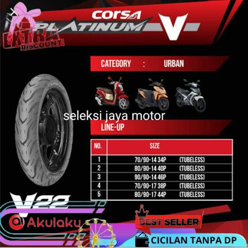 CICILAN/BARU+ PAKET BAN TUBLES MATIC PLATINUM V22 UK.80/90 & 90/90.14.FREE PENTIL.UNTUK SEMUA MOTOR MATIC