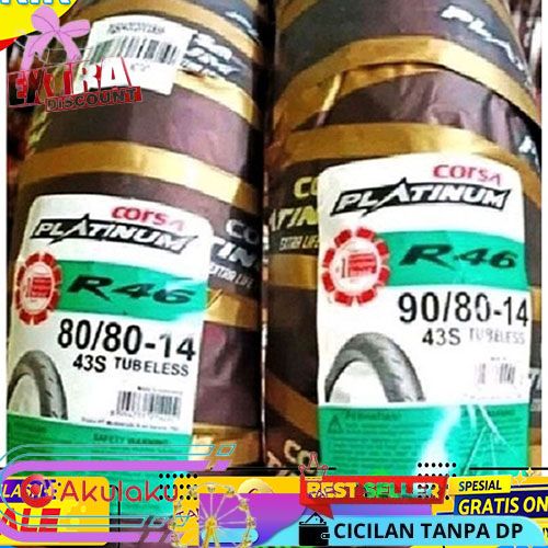 CICILAN/BARU+ PAKET BAN TUBLESS MATIC CORSA R46(SOFT COMPOUND) 80/80 + 90/80 .RING 14 FREE ..PENTI
