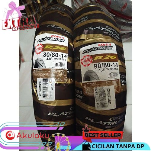 CICILAN/BARU+ PAKET BAN TUBELESS CORSA PLATINUM R26 80/80 14 & 90/80 14 FREE PENTIL