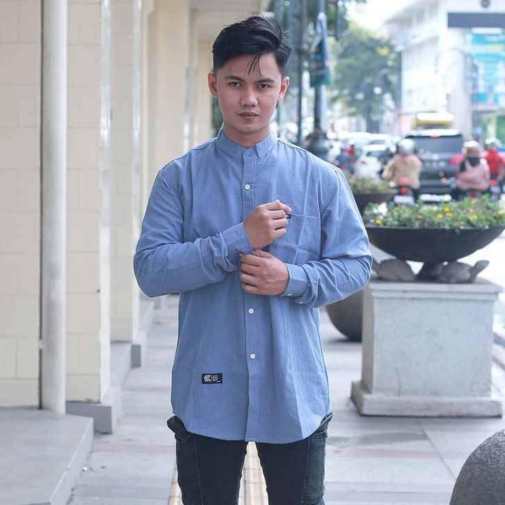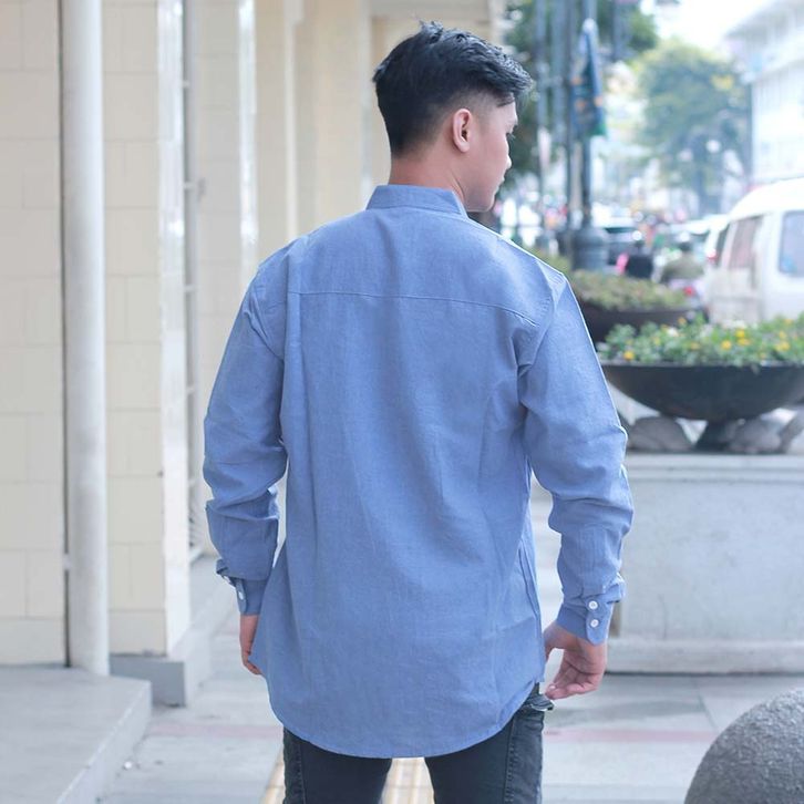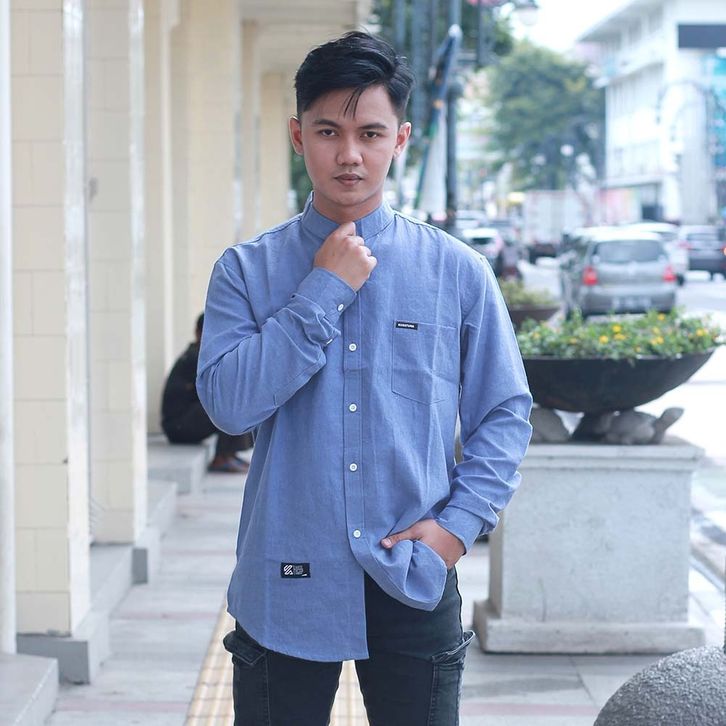 Kemeja Koko Pria Lengan Panjang Warna Biru Langit Bahan Katun KKC KZR 255