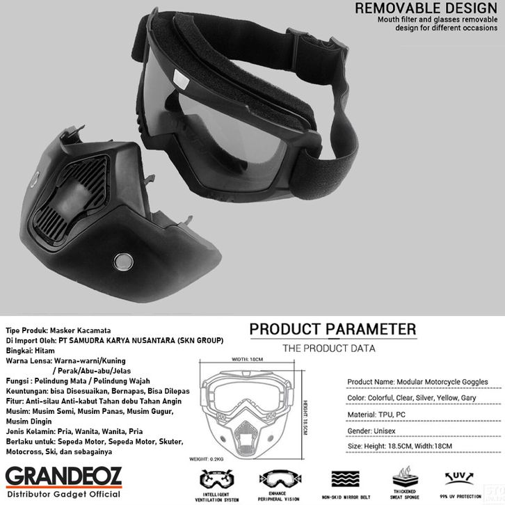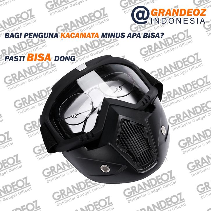 Goggles Kacamata + Masker Full Face Helem Goggle Mask Helm Gun Ski Motor Cross Topeng Kaca Mata Trail Air soft Motocross