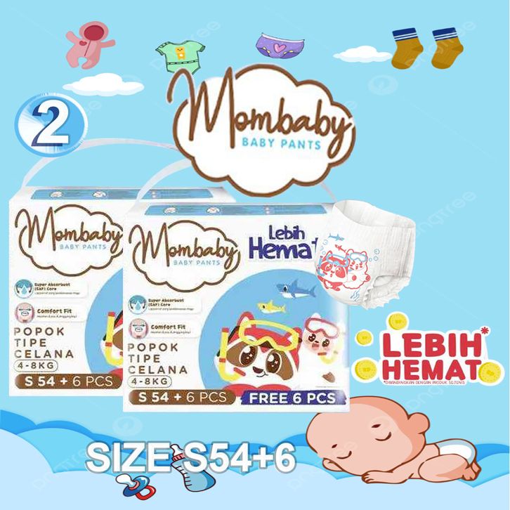 Paket 2 Ball Harga Special Mombaby Pants size S54+6 M50+8 L42+8 XL36+8 XXL32+8 Pampers