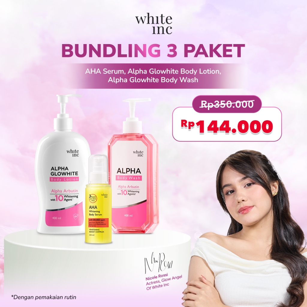 [BUNDLING 3] WHITE INC Alpha Glowhite PDRN Glucowhite TranexHya Body Lotion + AHA Body Serum + Alpha Glowhite Body Wash