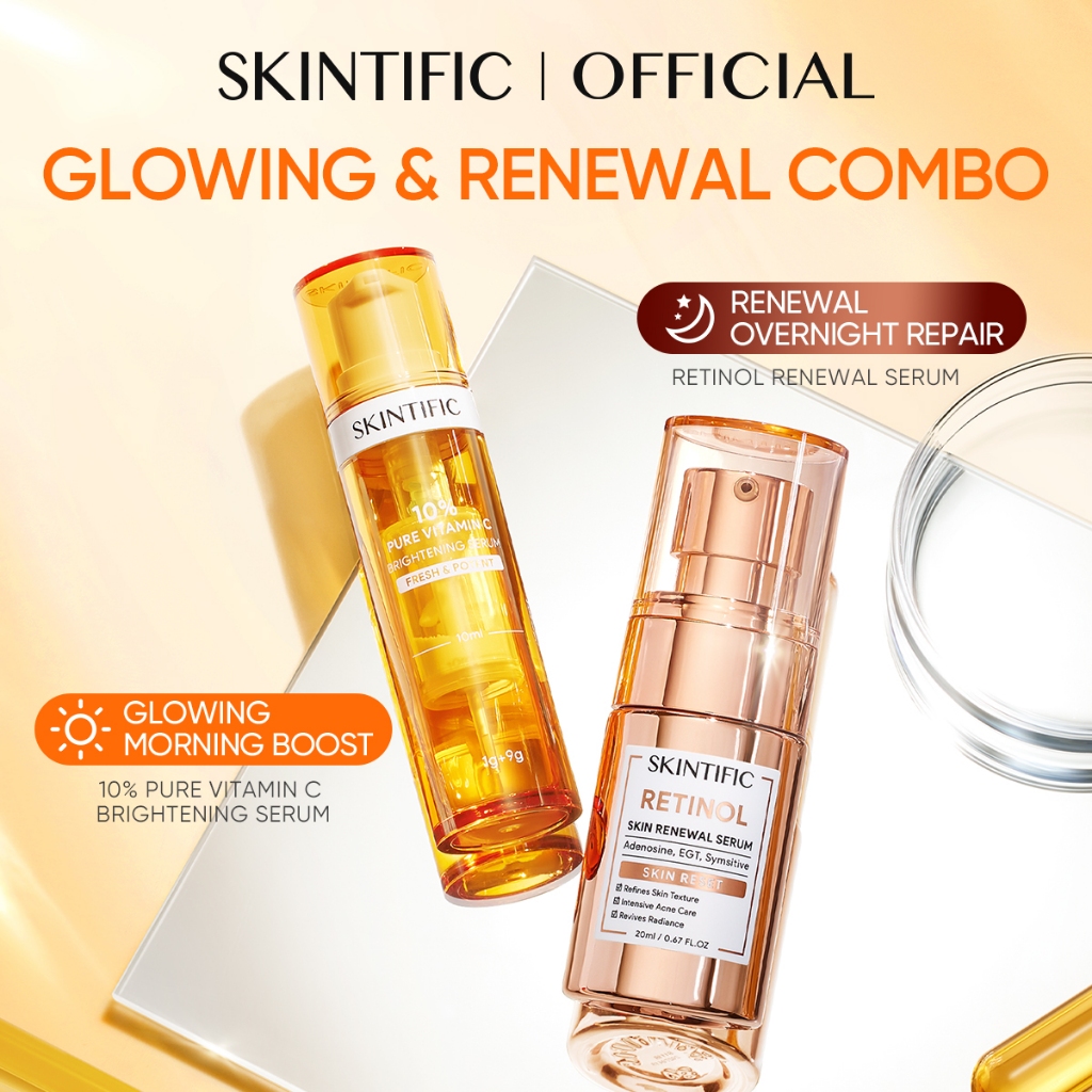 DAY&NIGHT Serum Combo VITAMIN C FRESH BRIGHTENING SERUM+ RETINOL RENEWAL SERUM| Menyamarkan Noda Hitam Mencerahkan