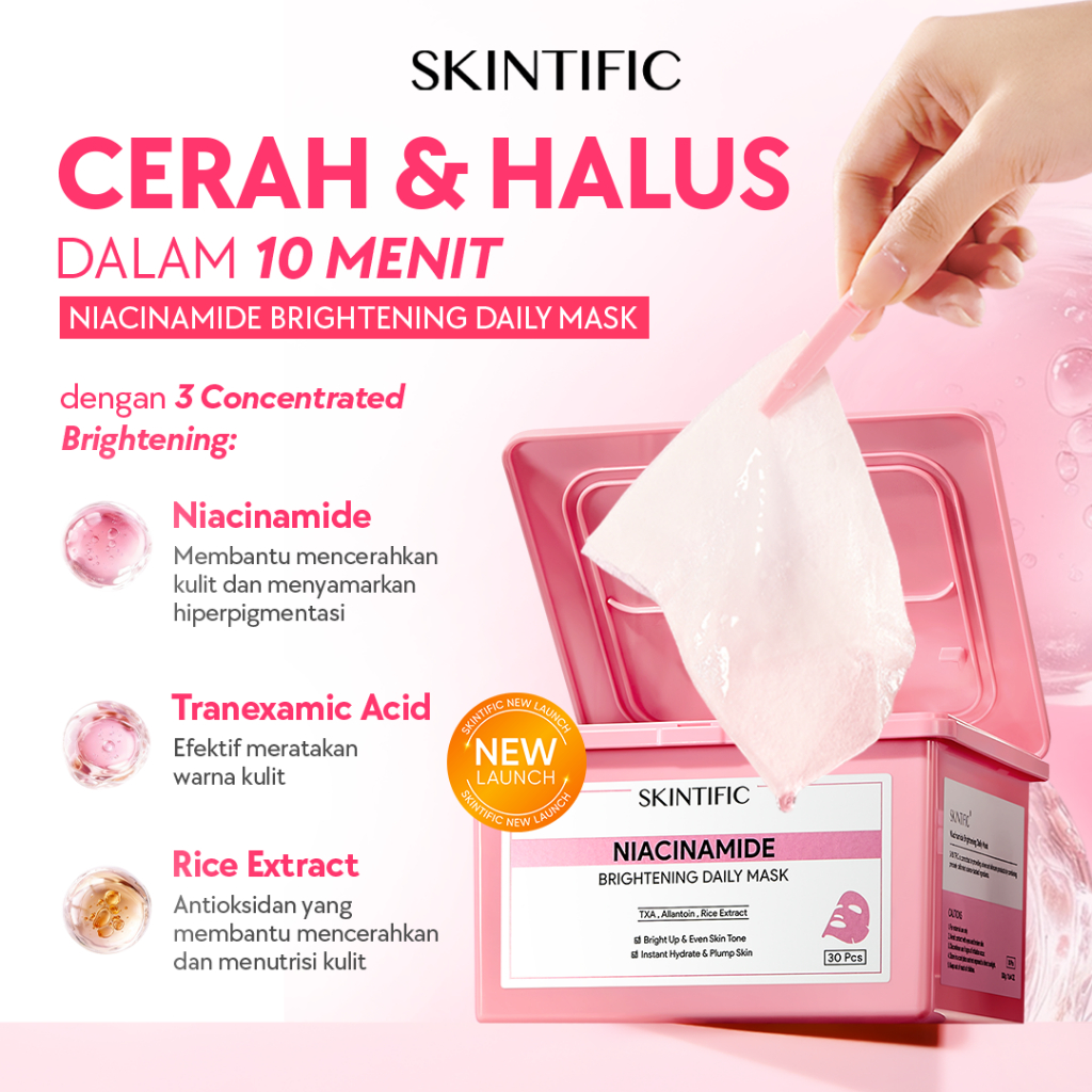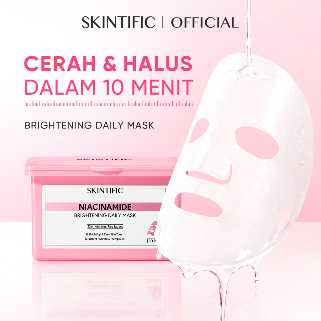 NEW SKINTIFIC Niacinamide Brightening Daily Mask Masker Wajah Mencerahkan Melembutkan Melembabkan Masker Glowing