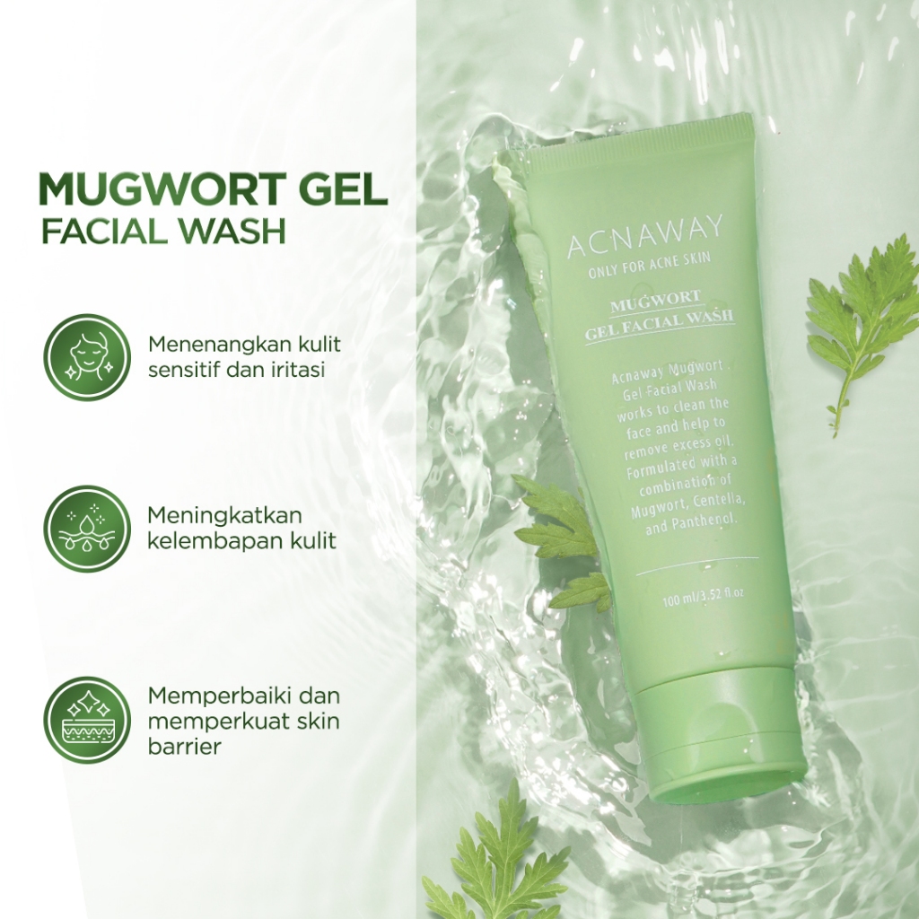 ACNAWAY Bundle 3 in 1 Essential Set - Mugwort Gel Mask + Mugwort Water Gel + Mugwort Gel Face Wash Paket Skincare Daily