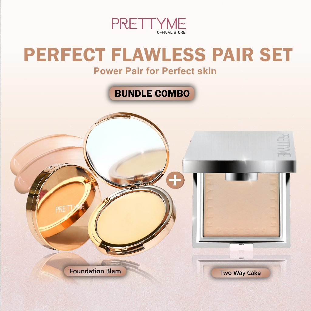 [PROMO SET!!] PRETTYME Bundling Foundition Balm + Two Way Cake Setting Powder Matte Finish Oil Cintrol And Stay 24 Hours