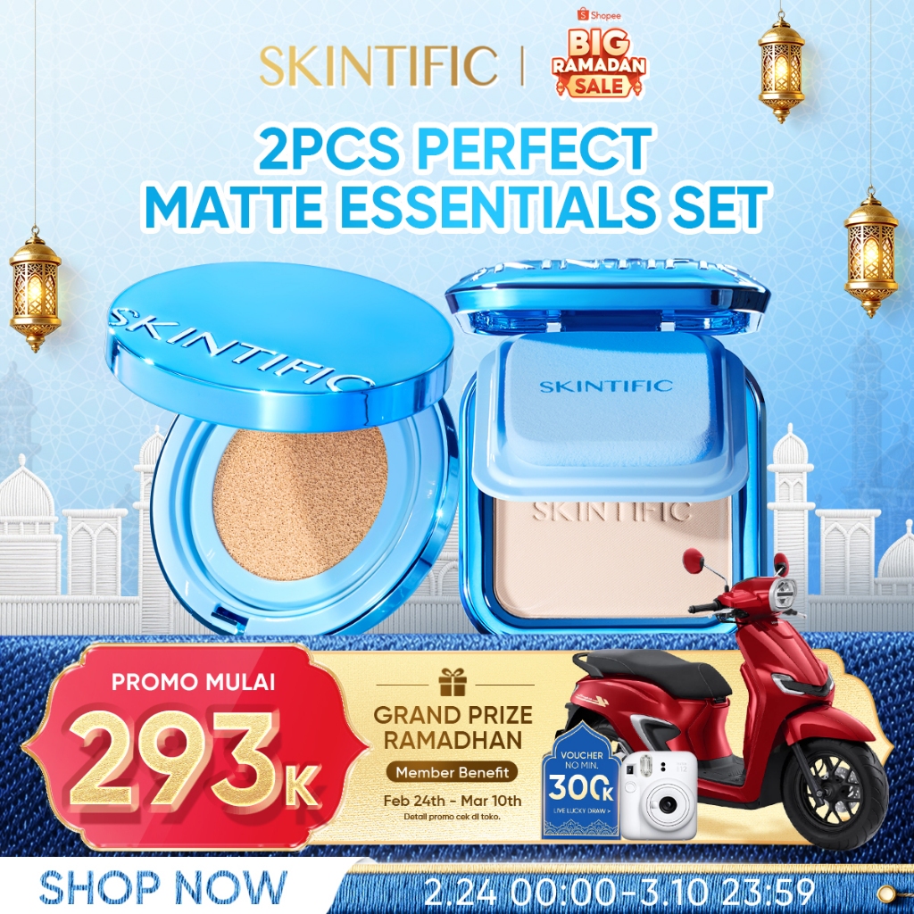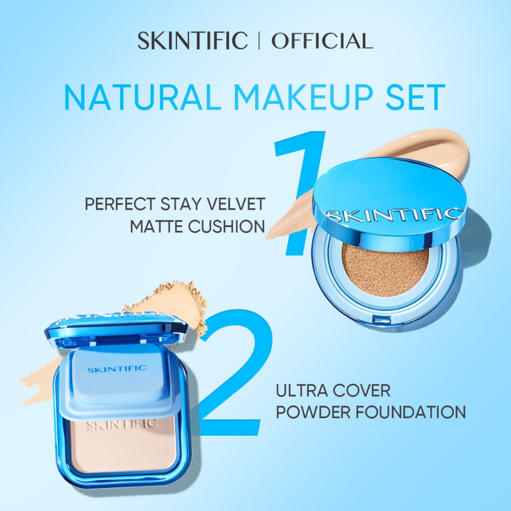 2 Pcs Paket Makeup 2in1 Set Bundle Cushion Skintific + Powder Foundation Bedak Padat BB Cream Skintint Waterproof Murah