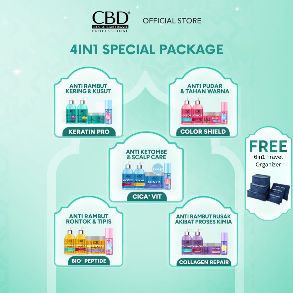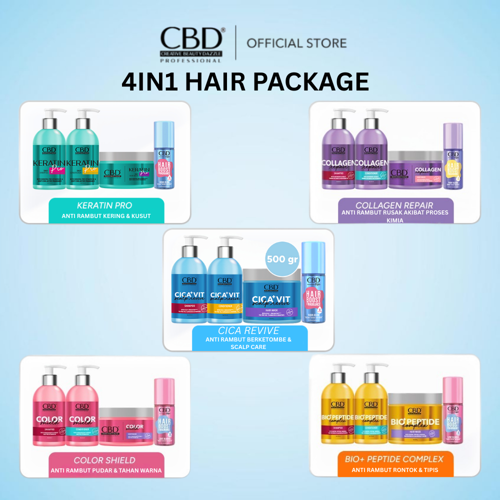 [4in1] Paket Perawatan Rambut Lengkap CBD Professional Treatment Color/Keratin/Shield/Collagen + Parfum Rambut 100ML