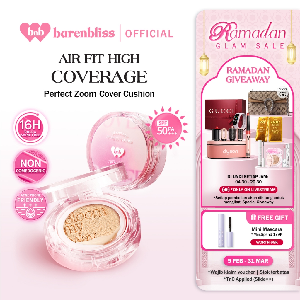 Best Seller BNB barenbliss Cushion 15g SPF 50+ PA+++ Full Coverage Bedak Padat Powder Foundation Skintint BB Cream