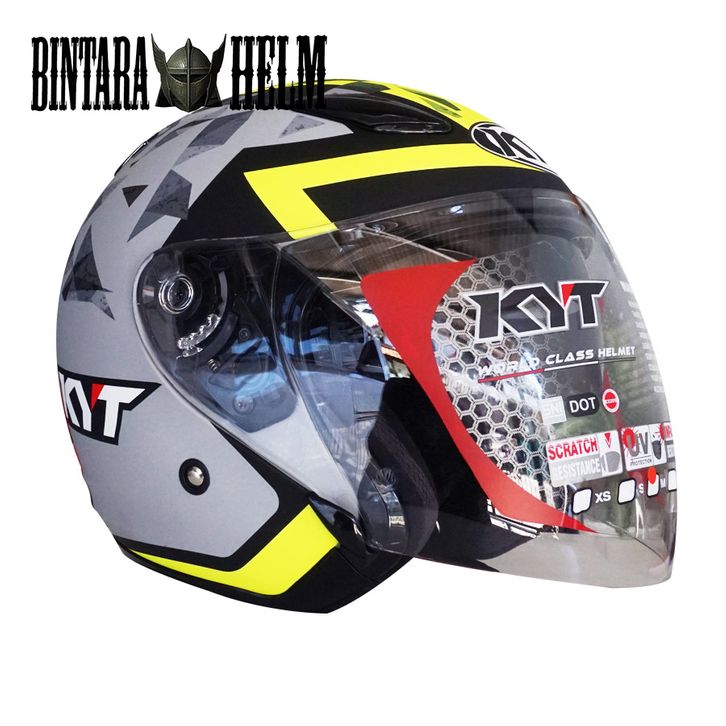 HELM KYT ORIGINAL HELM KYT DJ MAXI #1 ASPHALT MATT GRAY YELLOW ORI HELMET HALF FACE KYT