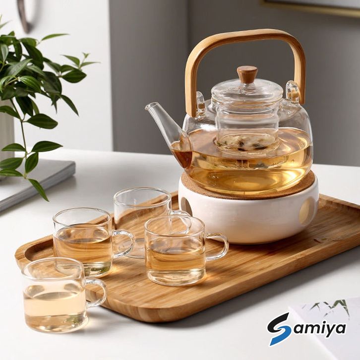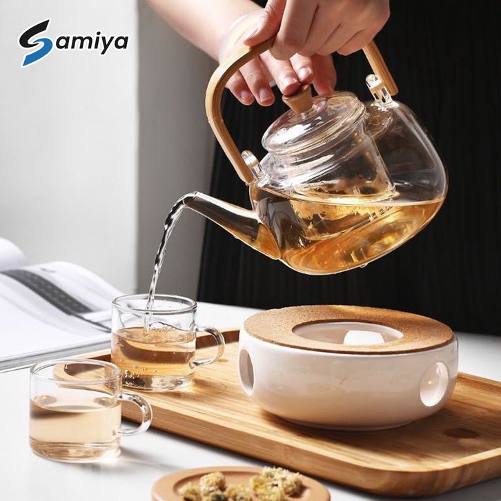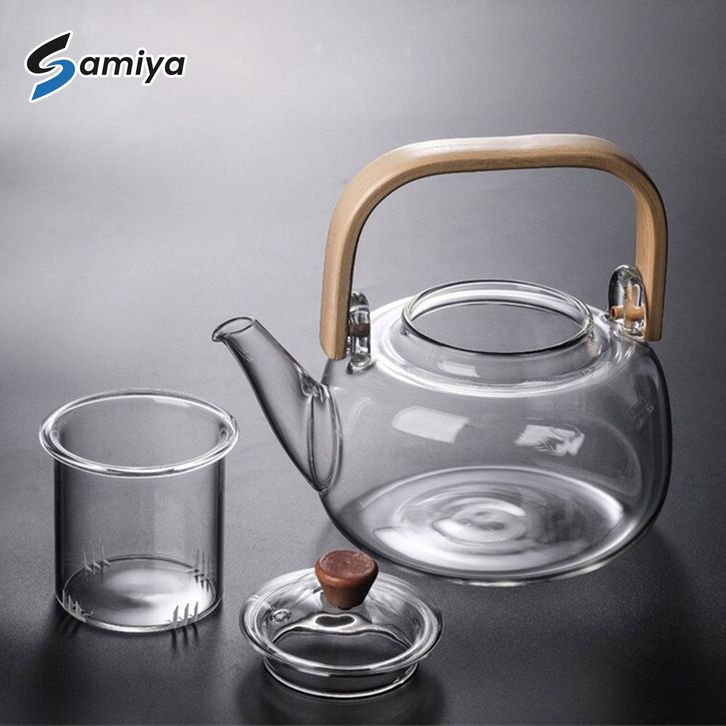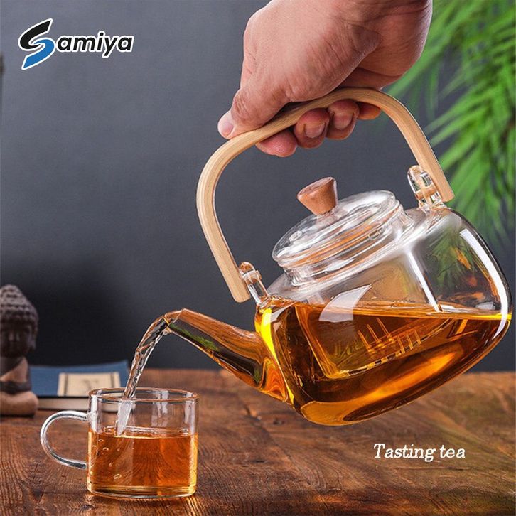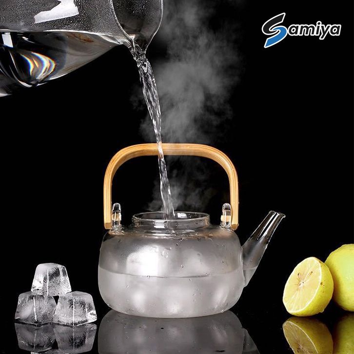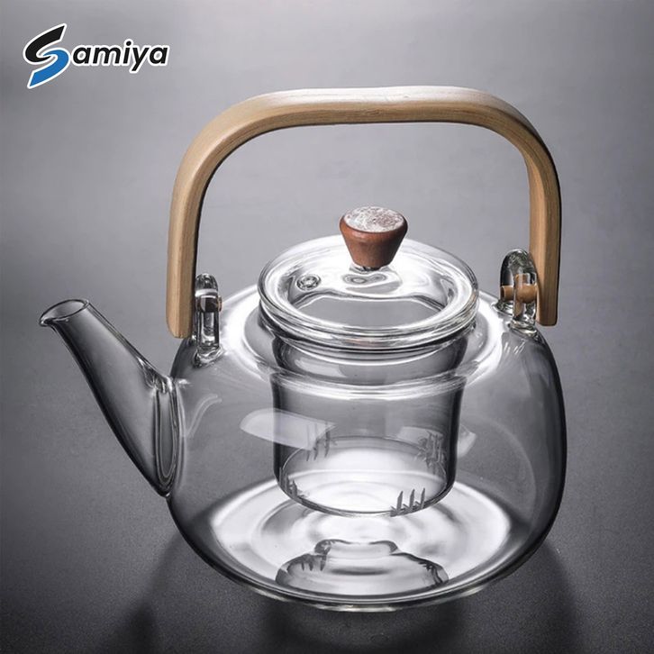 TEKO KACA TAHAN PANAS & DINGIN TEAPOT GLASS BAMBOO HANDLE HEAT RESISTANT TEKO TEH CERET GAGANG BAMBU