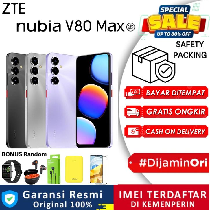 [Official Store✔] nubia V80 Max 128GB 8 GB Smartphone Layar 6.9" HD 120Hz, Baterai 6000mAh Fast Charging RESMI