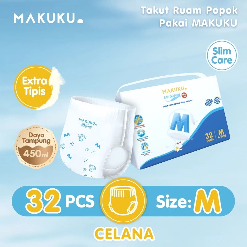 MAKUKU SAP DIAPERS SLIM CARE M32 L30 XL28 XXL26 POPOK BAYI