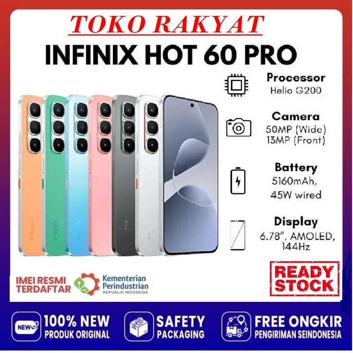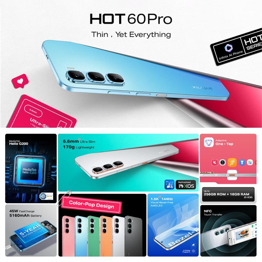 (BEBAS ONGKIR) Hp INFINIX HOT 60 PRO RAM 8+256GB | Mediatek Helio G200 | Camera 50MP | Batery 5160mAh