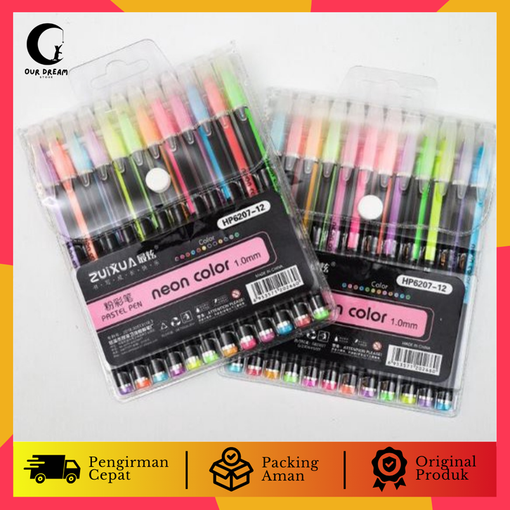 SET PULPEN GEL 12 WARNA | PULPEN GEL NEON COLOR / PEN PASTEL WARNA WARNI 1 SET 12 WARNA / GLITTER PEN GEL