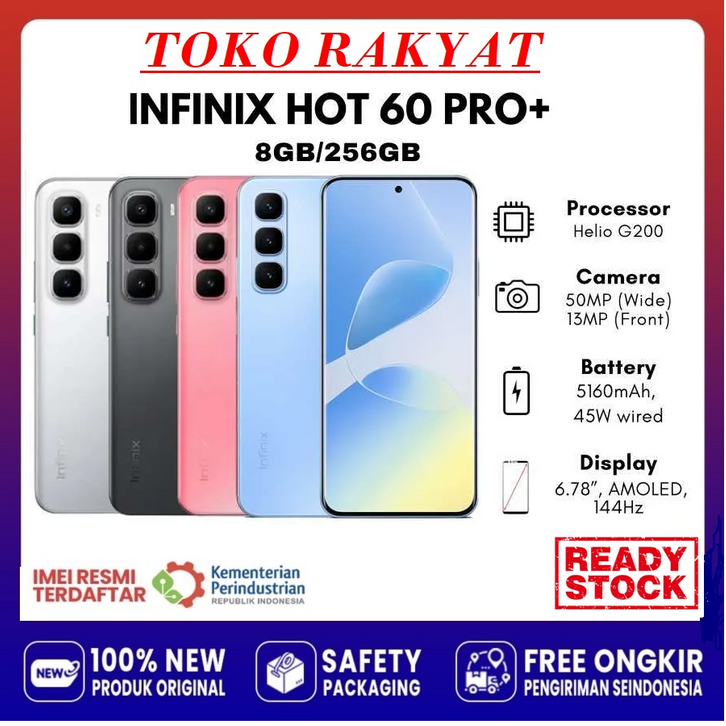 (BEBAS ONGKIR) Hp infinix Hot 60 Pro Plus 8+256GB | Mediatek Helio G200 | Camera 50MP | Batery 5160mAh 45W |