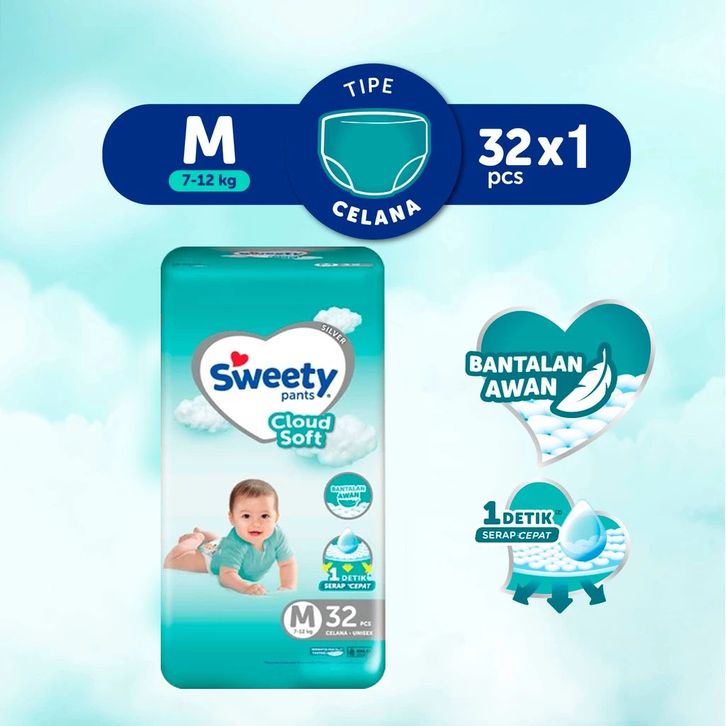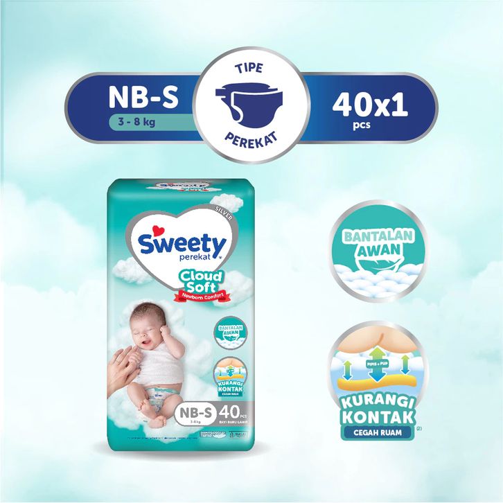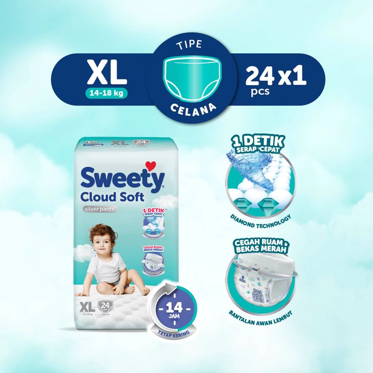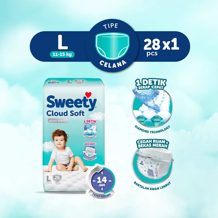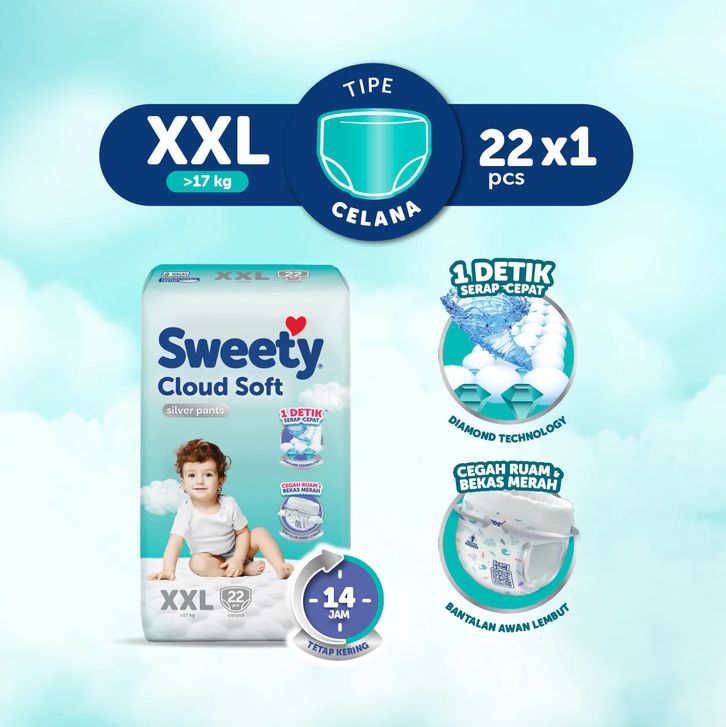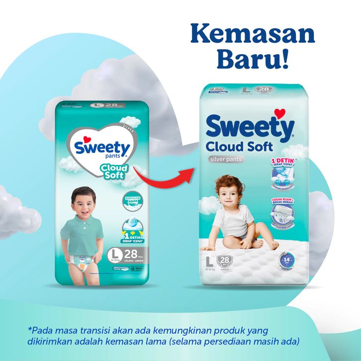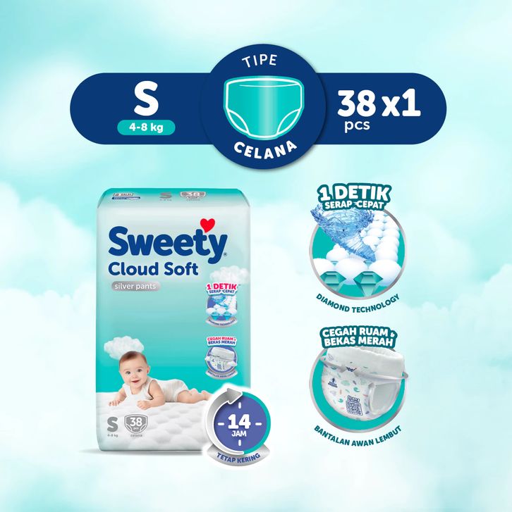 SWEETY SILVER PANTS S38, M32, L28, XL24, XXL22,TAPE NB-S40 popok celana