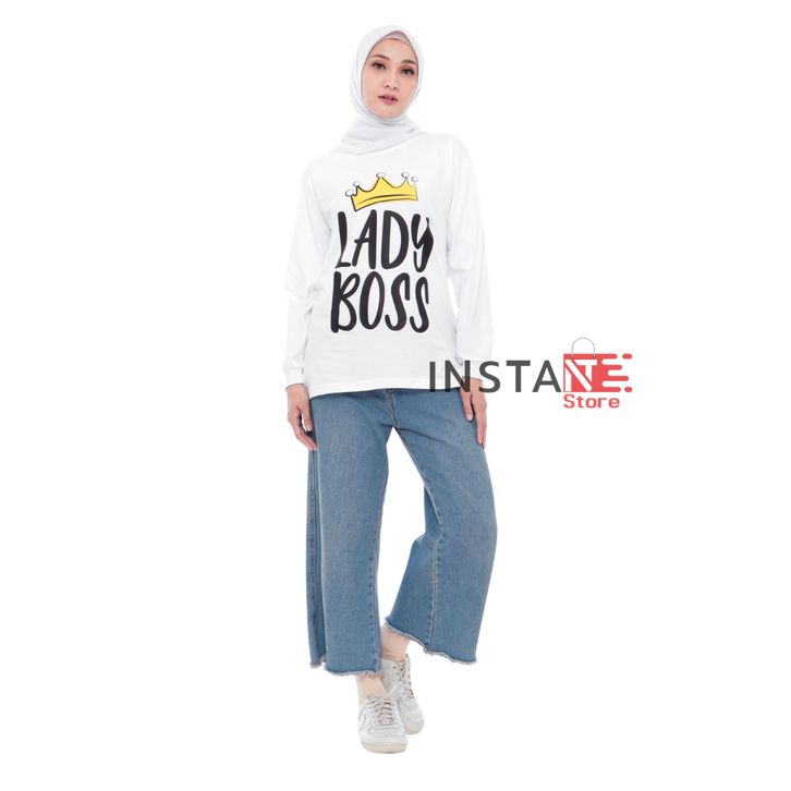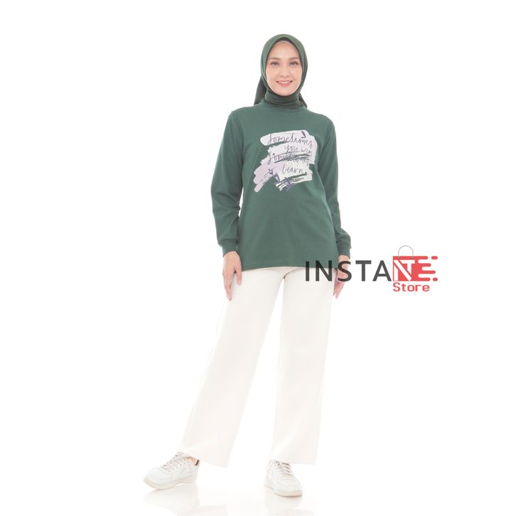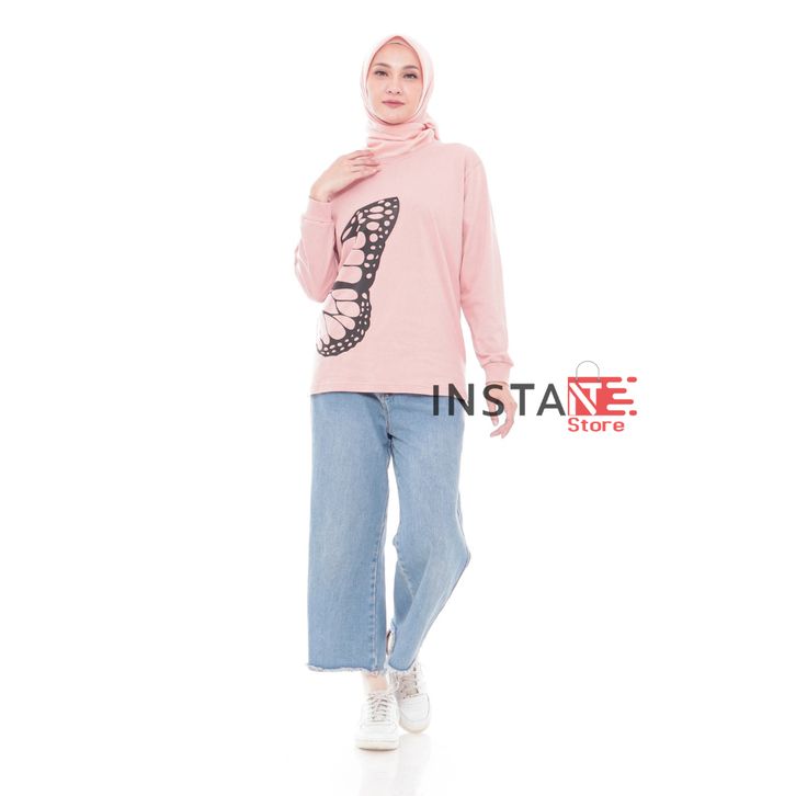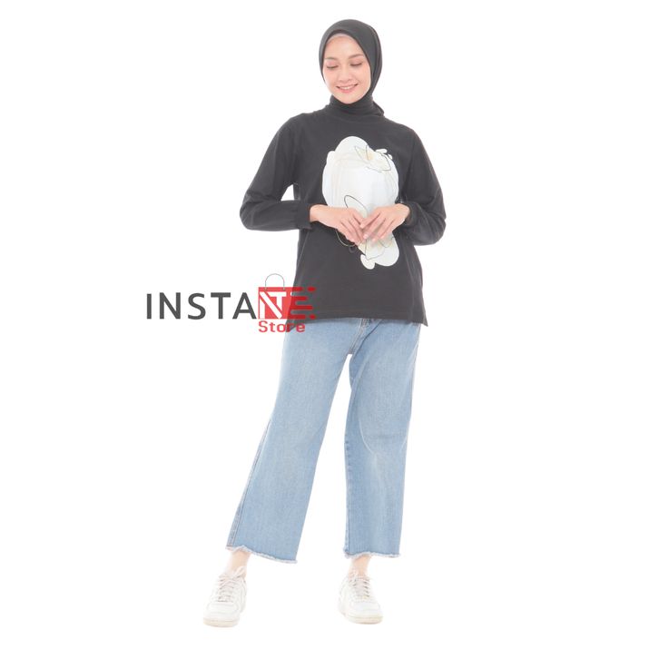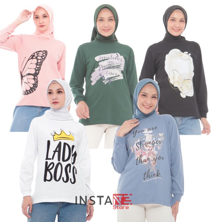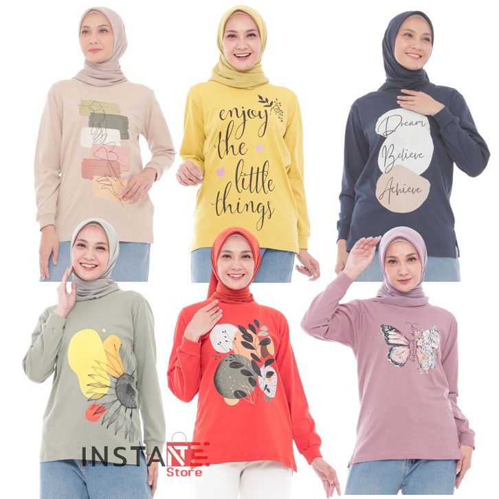 Kaos Oversize Wanita Kekinian Lengan Panjang Bahan Cotton Combed Adem Atasan Wanita Jumbo Casual Terbaru