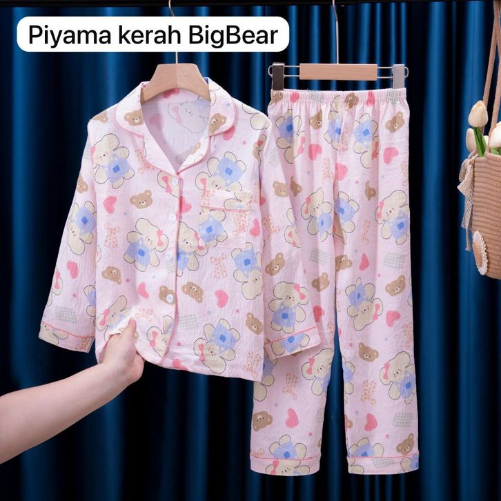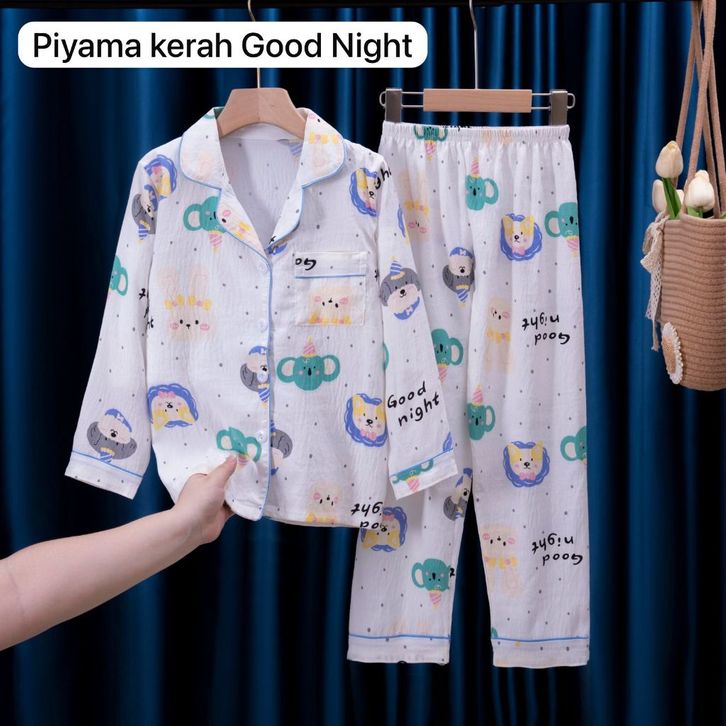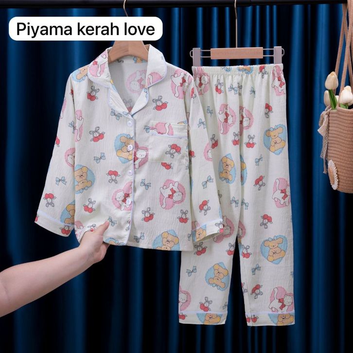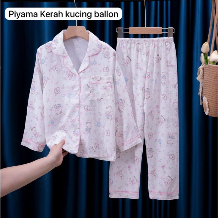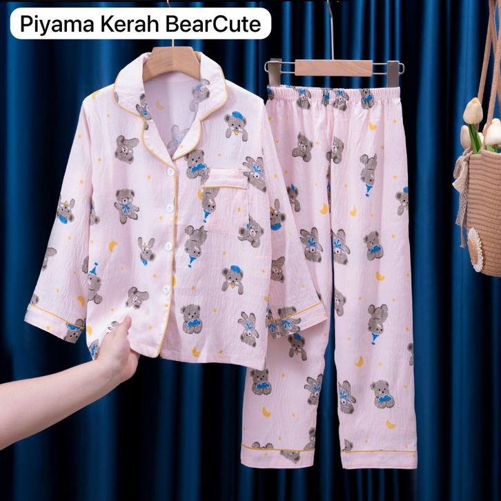 Piyama Baju Tidur kerah Anak Perempuan Umur 4-15 Tahun Motif Lucu Terbaru Bahan Premium