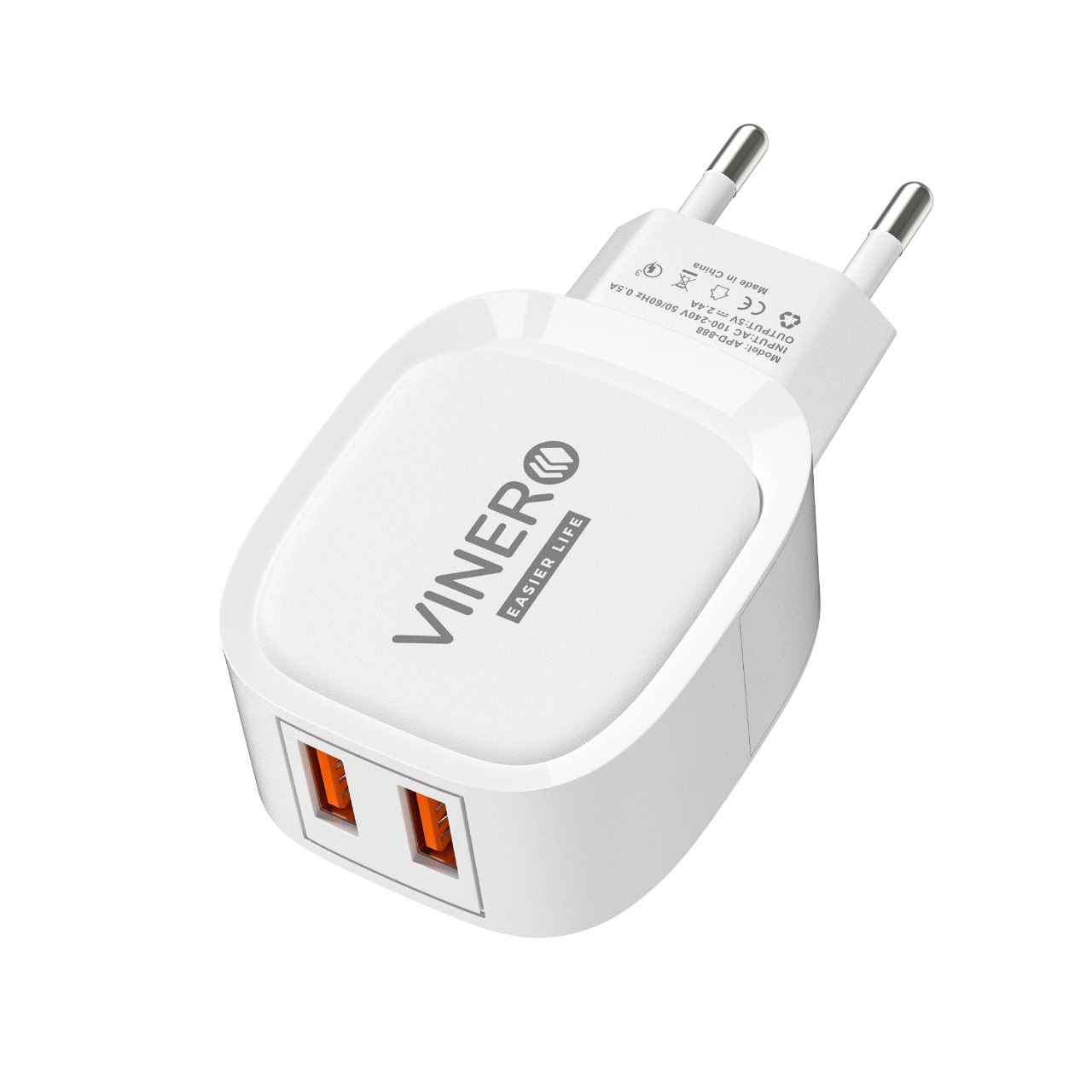 Vinero Dual Port USB Wall Charger Travel Adapter For All Smartphone