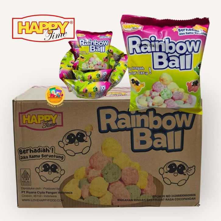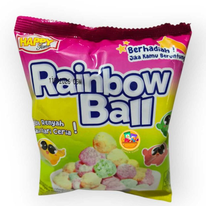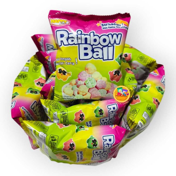 Chiki Rainbow Ball Chiki Berhadiah / Happy Time Harga 1 Renceng 10 Pcs termurah ciki viral terlaris
