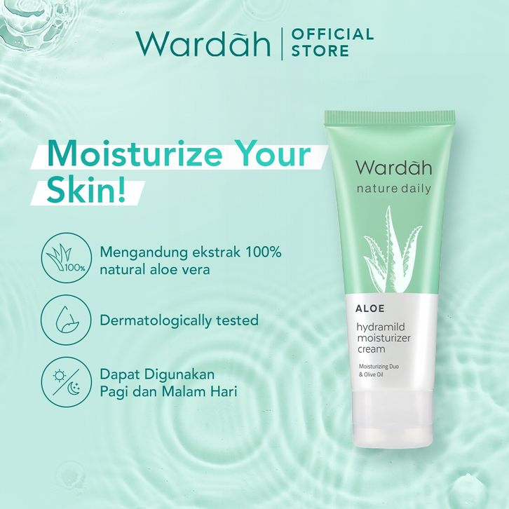 Wardah Nature Daily Aloe Hydramild Moisturizer Cream 40 ml - Pelembab dengan Olive Oil Perawatan Wajah