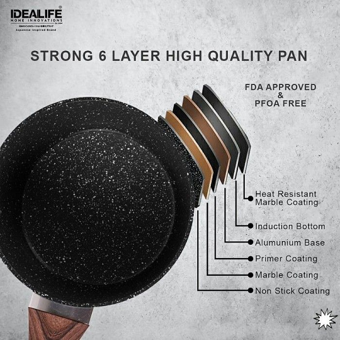Idealife Panci Frypan Marble Fry Pan 20cm 24cm IL 20FP 24FP 20 24 FP