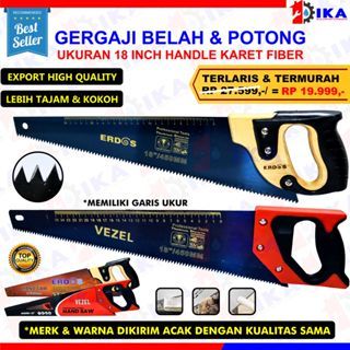 Gergaji Kayu Gagang Karet Harga Satuan Termurah Berkualitas / Gergaji Tangan Karet 2 Mata 18 Inch Gergaji Potong Belah