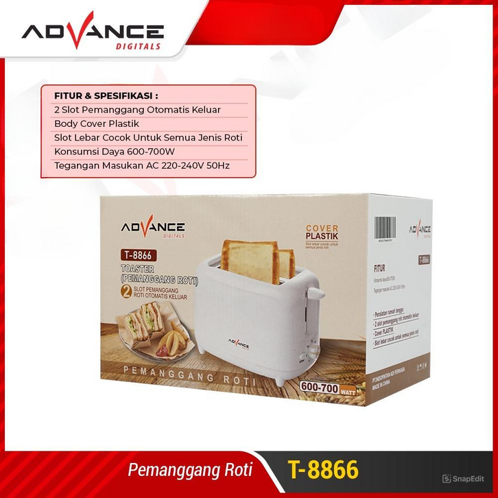ALAT PANGGANG READY STOCK ADVANCE PEMANGGANG ROTI LISTRIK TOASTER SANDWICH OTOMATIS POP-UP T8866 PANGGANGAN ROTI