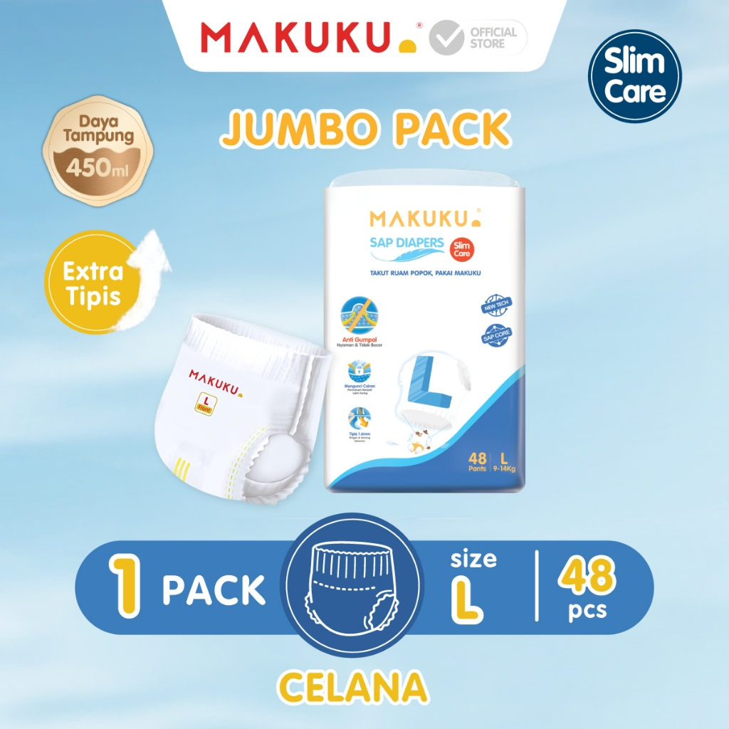 1 BALL MAKUKU SAP DIAPERS SLIM CARE TAPE NB36 S34 M32 L30 XL28 XXL26 Popok Bayi Sekali Pake