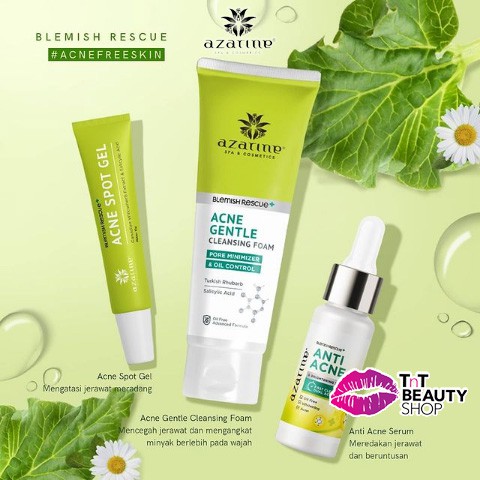 AZARINE ANTI ACNE SERIES - CLEANSING FOAM 60ML - ACNE SPOT GEL 15GR - ANTI ACNE SERUM 20ML | AZARINE FACE TONER 90ML