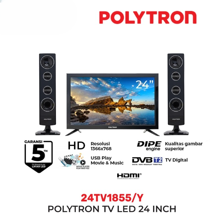 POLYTRON LED TV 24 INCH 24TV1855/Y DIGITAL CINEMAX SOUND SPEAKER TOWER TV 32 INCH USB PLD 32TV1755 GARANSI RESMI