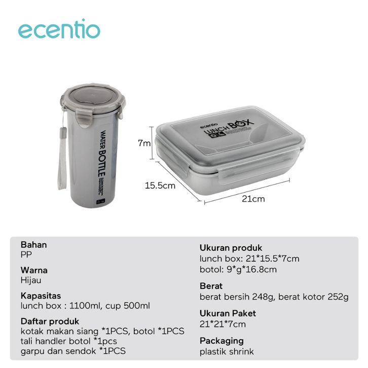 ecentio 1100ml lunch box set 4 Grid tempat bekal makan dan tempat minum anak kotak makan anti tumpah free sendok
