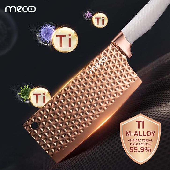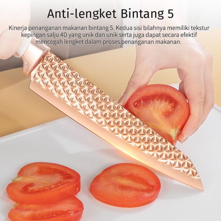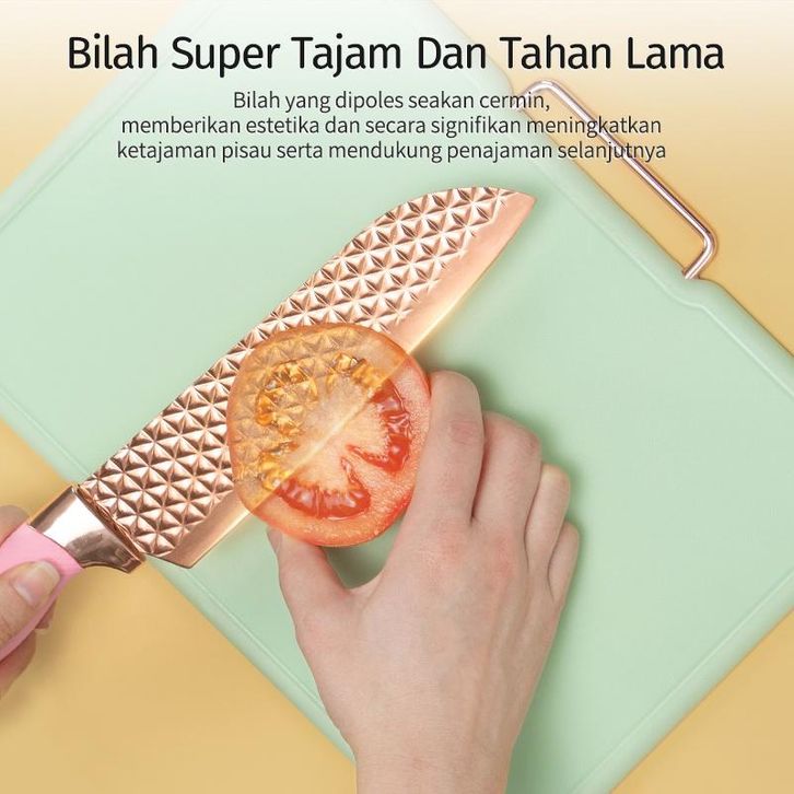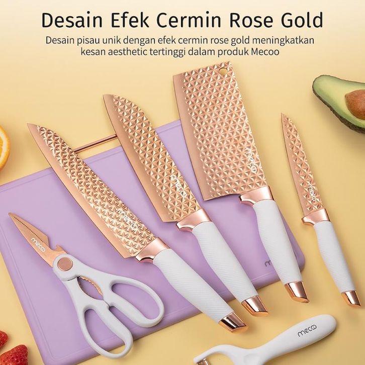 Mecoo Most Aesthetic 6 in 1 Antibacterial Pisau Set Knife Set Pisau Dapur Anti Lengket Titanium Rose Gold / Pisau Dapur
