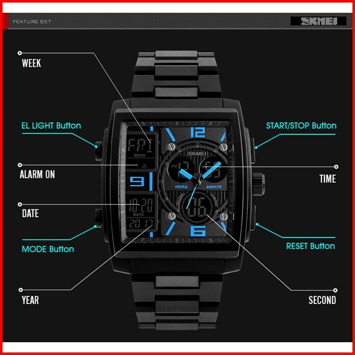Jam Tangan Pria Digital Analog Skmei 1274 Black Water Resistant 50m