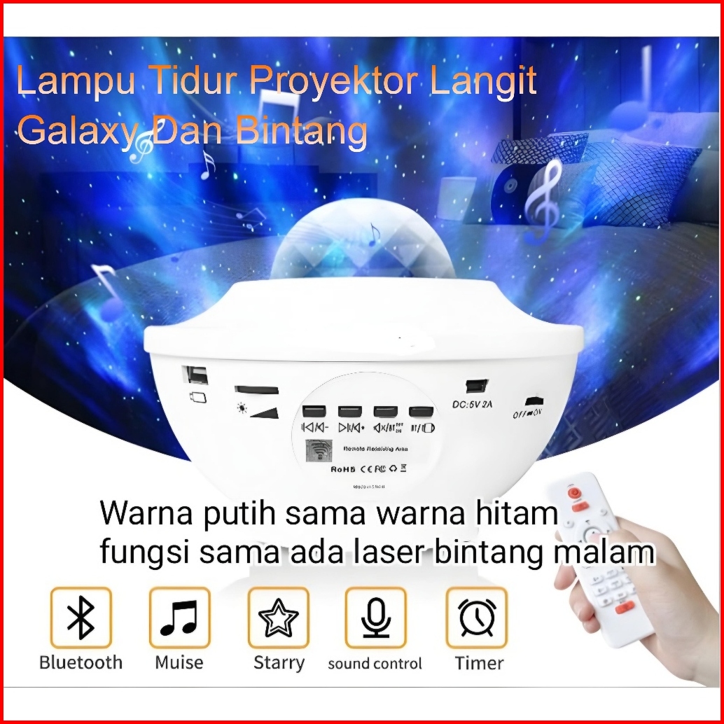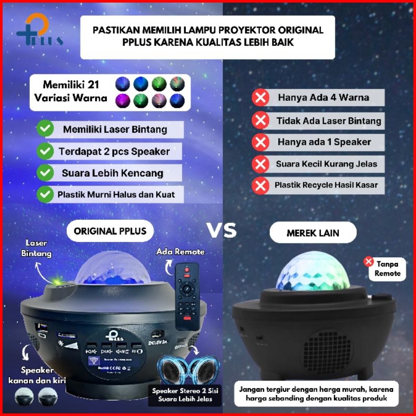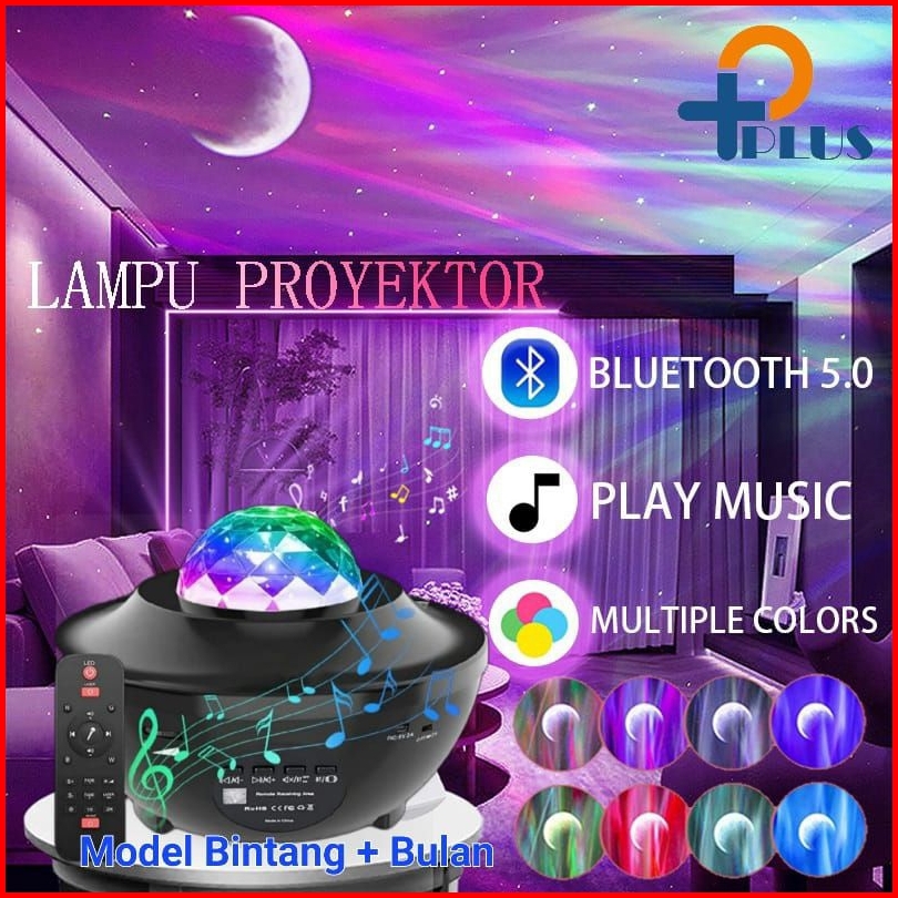 Pplus Lampu Proyetor Aurora Dengan Speaker Langit Malam Bulan Bintang 2 In1 Lampu Starry Projector Light Lampu Tidur Lam
