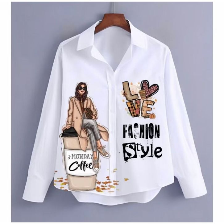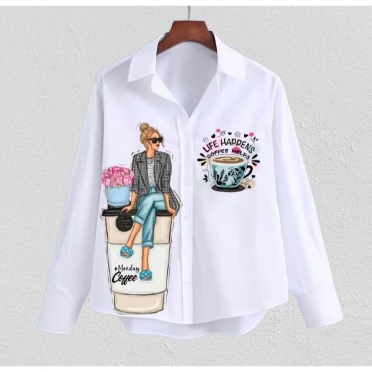 Kemeja Casual Wanita Bahan Shakila Premium Motif Sablon 3d - Oversize M L XL XXL 3XL 110 120 130 Jumbo
