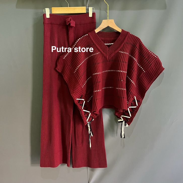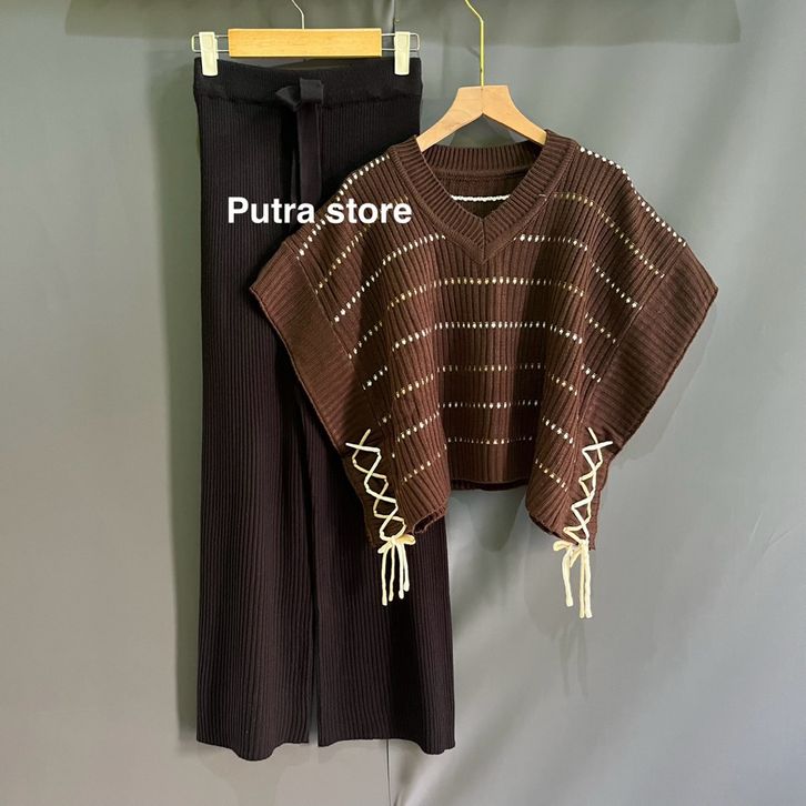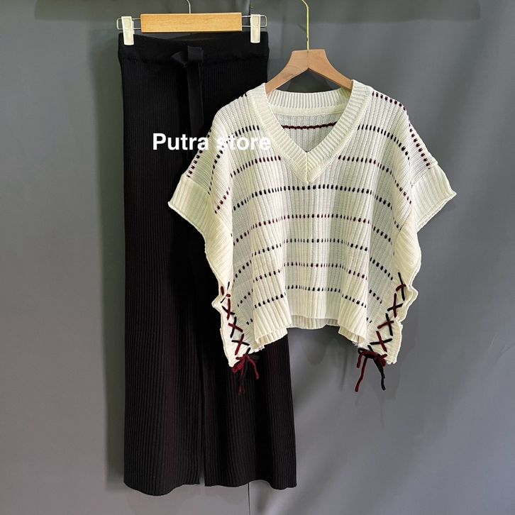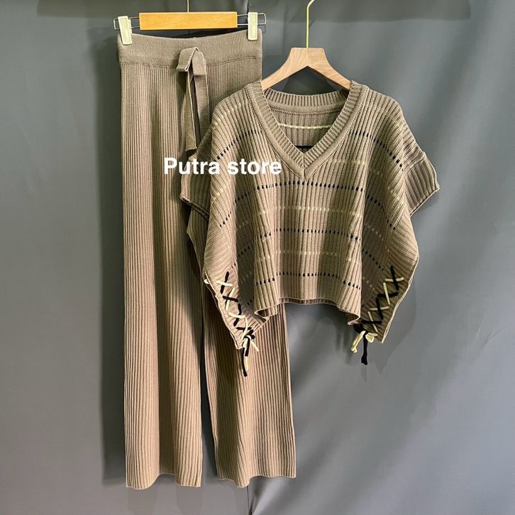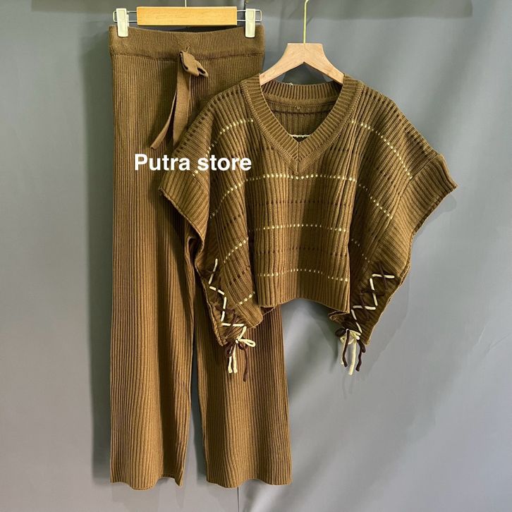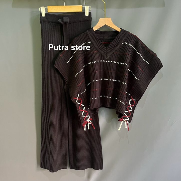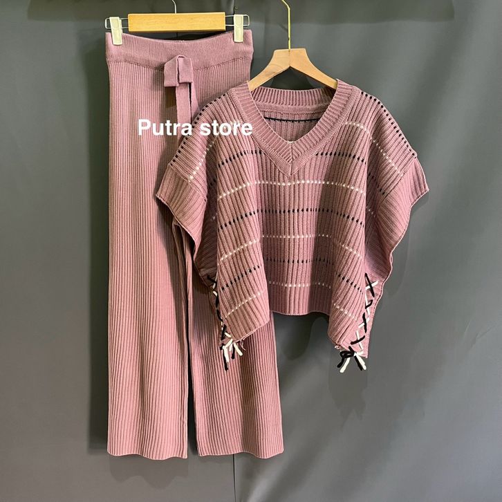 Setelan Wanita Kekinian Rajut Vest Knite + Kulot Rajut Premium Setelan Baju Celana Wanita Simple Tapi Elegan