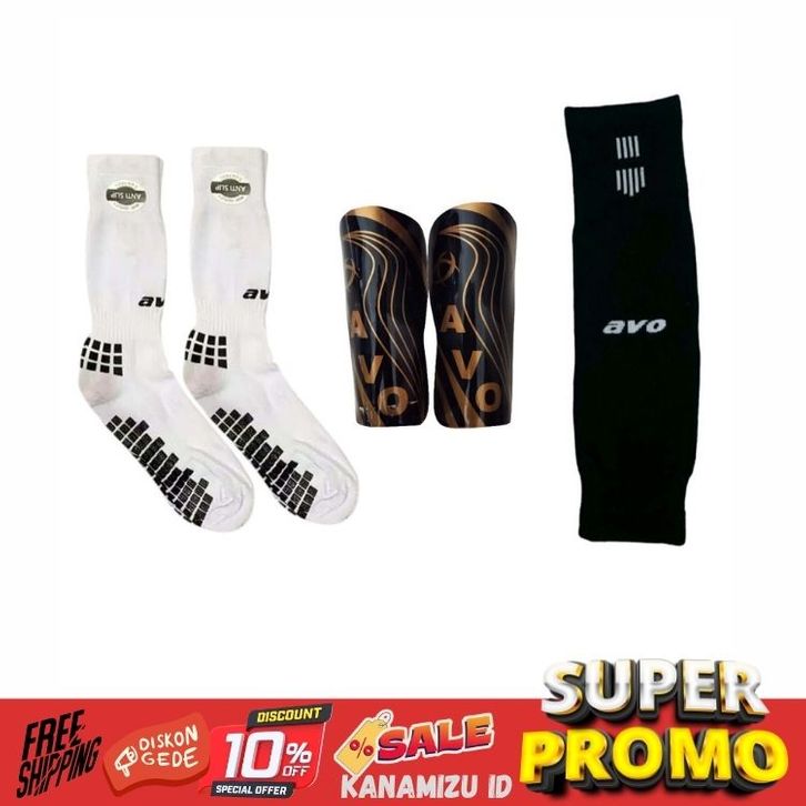 KANAMIZU Paket 3 in 1 Kaos Kaki Futsal Anti Slip Deker dan Sambungan Kaos Kaki AVO