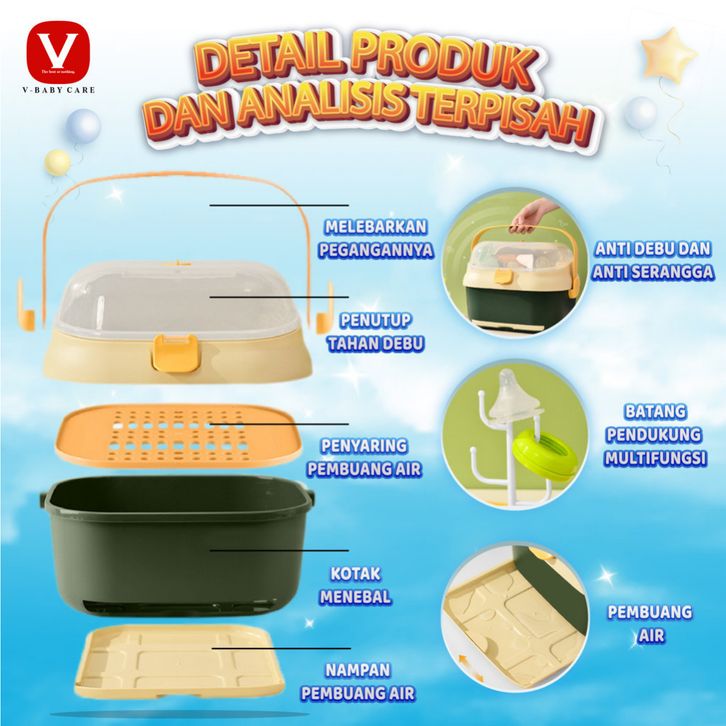 VBABY CARE Rak Pengering Botol Bayi Anak, Tempat Rak Perlengkapan Bayi Pengering Plastik Serbaguna VBABY- MT2