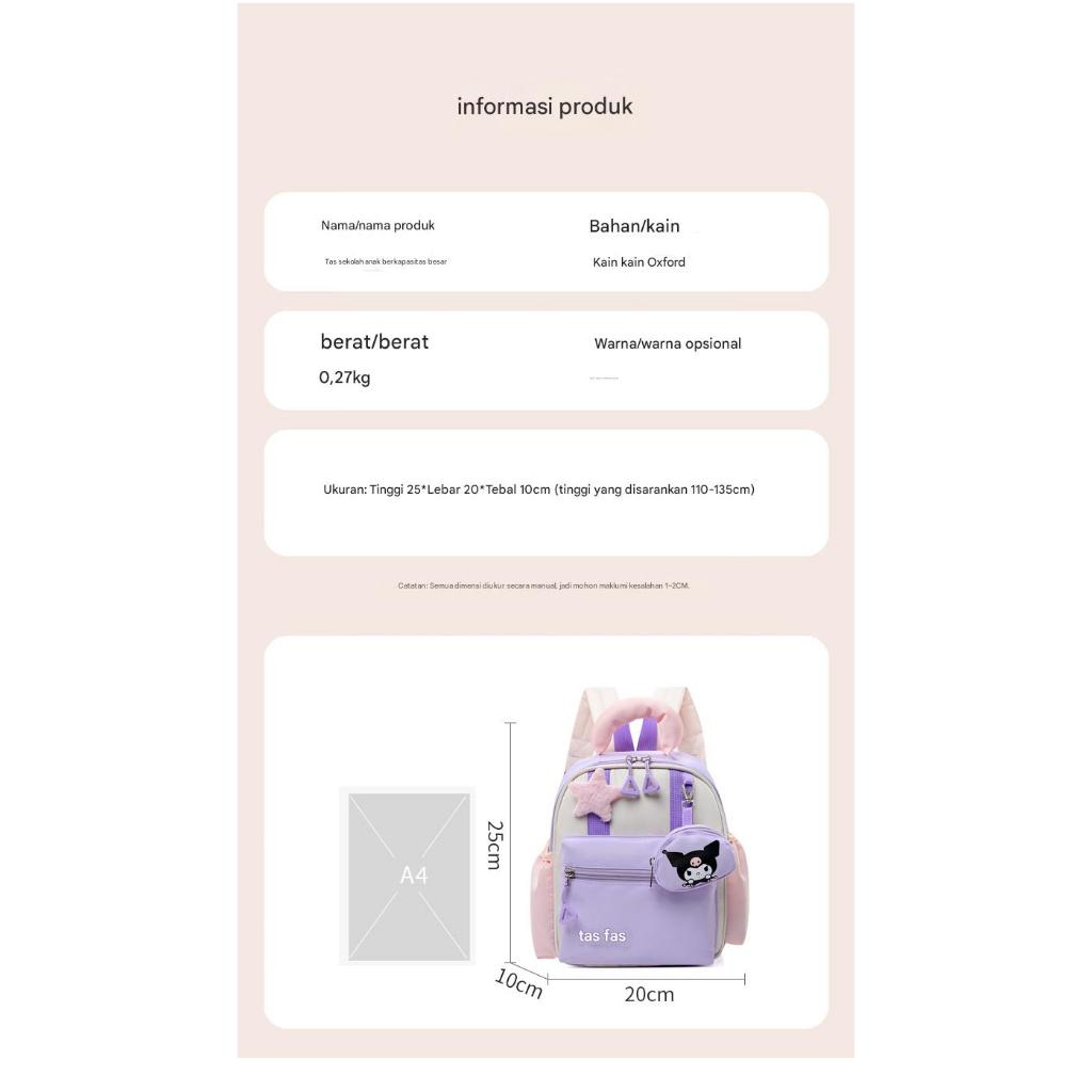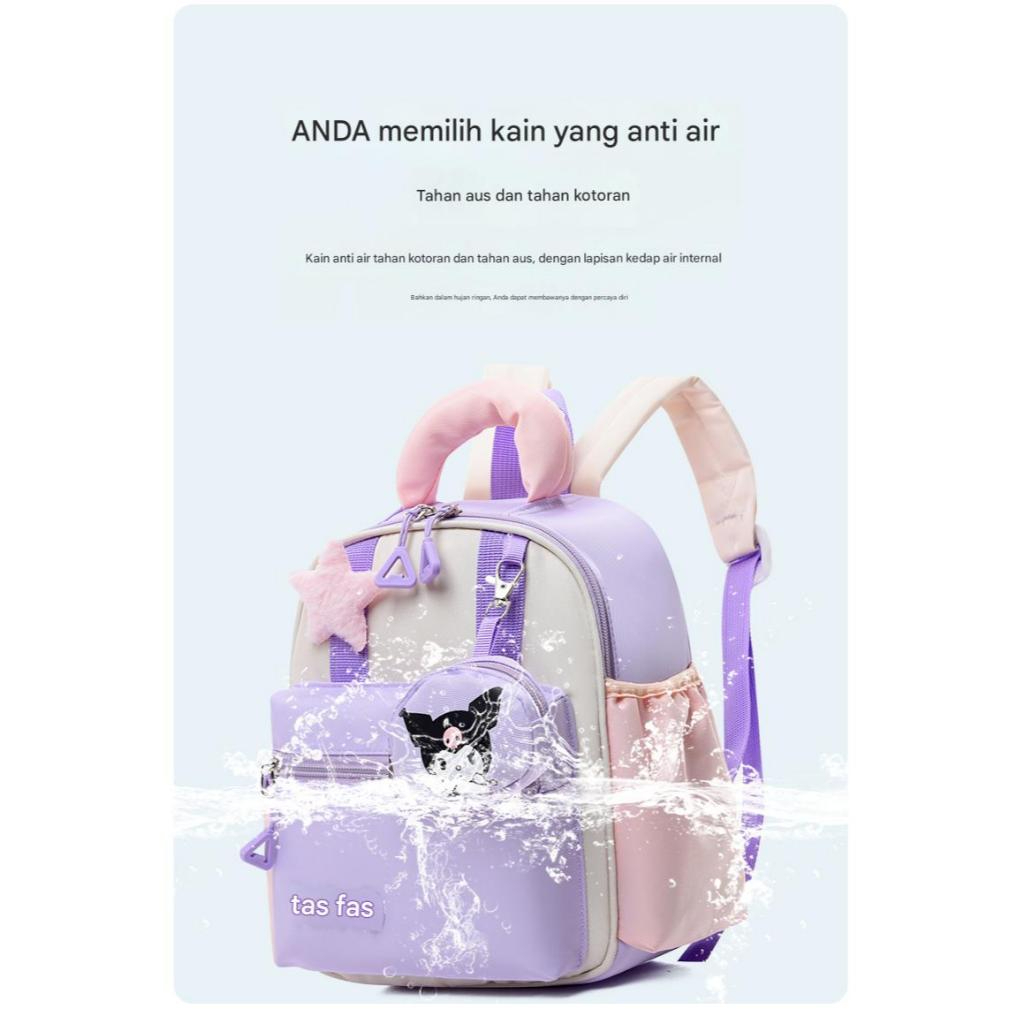 Tas Sekolah Anak TK SD Tas Ransel Anak Perempuan Import Kuromi Melody Cinamorrol Tas Anak Cewek Waterproof RA02910