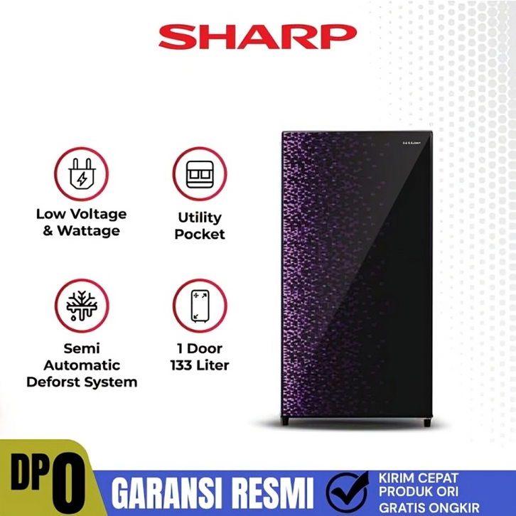SHARP ORIGINAL SJ-X165MG GR/GB Kulkas 1 Pintu 133 Liter Low Watt Shine Glass Door Pendingin Kapasitas Besar Terbaru