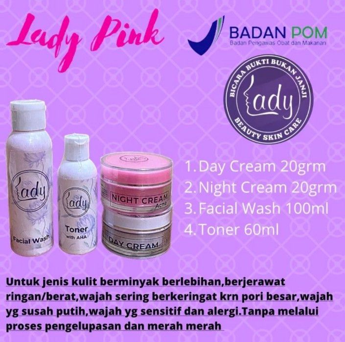 Lady Pink Cream Untuk Jenis Kulit Berminyak Berjerawat Sensitif ORIGINAL 100%