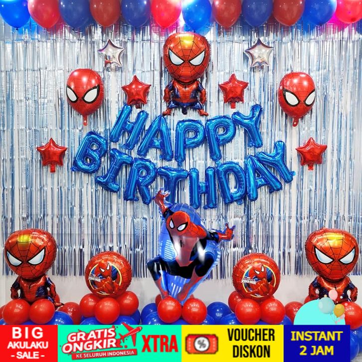 PROMO SPIDERMAN PREMIUM DECORATION SET/PAKET DEKORASI ULANG TAHUN ANAK LAKI/BALON FOIL SPIDERMAN/BALON HAPPY BIRTHDAY
