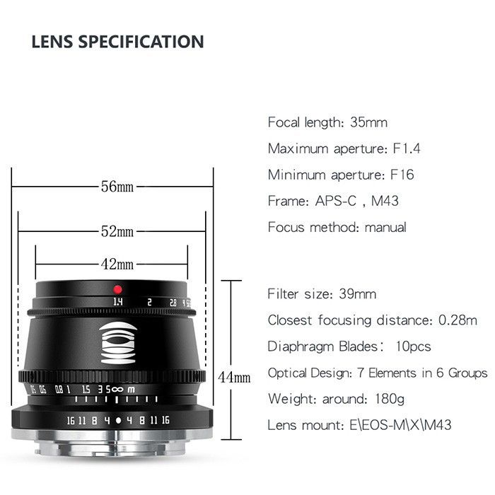 TTArtisan 35mm F1.4 APS-C Lens for Fuji FX Mount